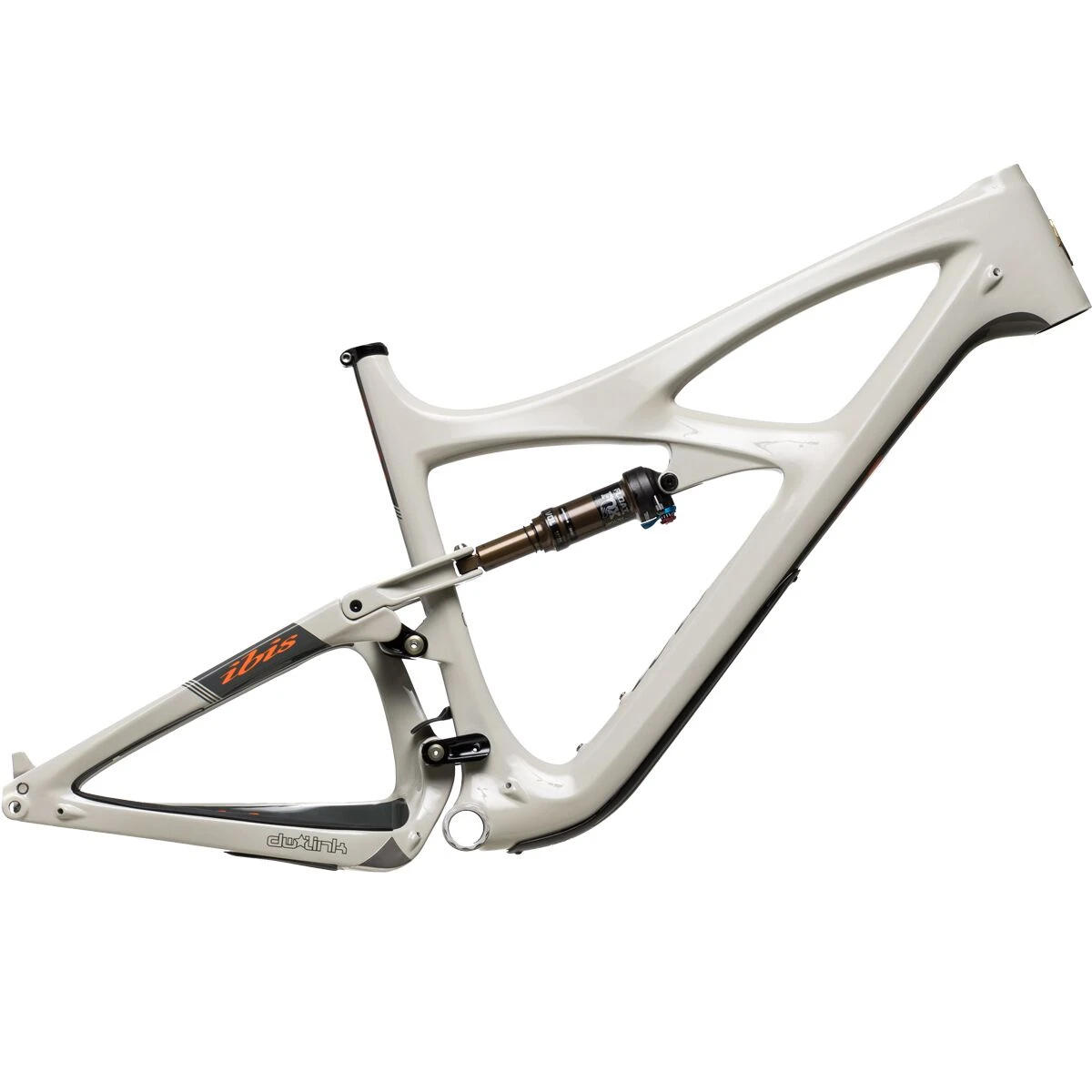 Like Ibis’ other bikes, the Mojo 4 is masterfully crafted from premium lightweight carbon, and despite the sub-6lb frame weight, the bike is very sturdy and offers the perfect balance of stiffness vs. compliance. The frame lines are unmistakably Mojo, but the new frame has some subtle yet practical differences from its predecessor. First off, all sizes have low standover heights and shortened seat tubes to accommodate long-travel dropper posts. This gives you the freedom to pick your size based on reach figures, and no matter what size you choose you’ll be able to run the longest possible dropper that your inseam can handle. The new frame features simplified tube-in-tube internal cable routing, and it uses IGUS bushings in the lower link instead of bushings—a design that’s now widespread in the Ibis lineup due to improved reliability and lower maintenance burden. All sizes fit a water bottle in the main triangle, and the bike can be fitted with the Ibis Pork Chop frame bag so you can store your tube, tools, and snacks on the bike instead of on your back.